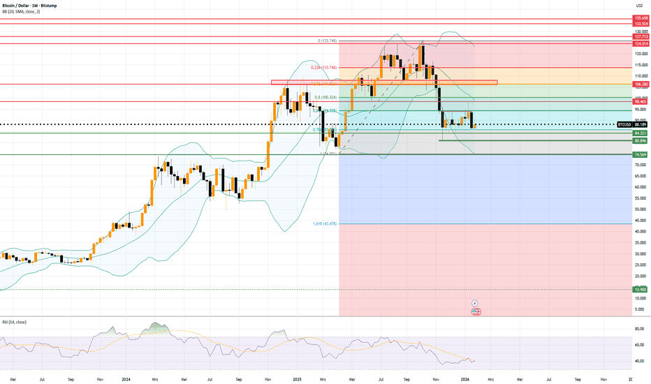 BTCUSD/ Wochen und Tageschart/ Kurzfristige PrognoseMoin,
