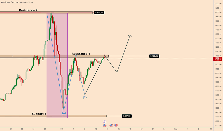 XAUUSD: Leerverkauf starten📢 Wir haben diese Woche fortlaufend Gold gekauft, und alle Trades haben die Zielniveaus erreicht. Jedoch testet Gold derzeit die Widerstandszone um 5100–5120. Obwohl jederzeit ein Ausbruch erfolgen kann, besteht Gewinnpotenzial bei kurzfristigen Leerverkäufen.
