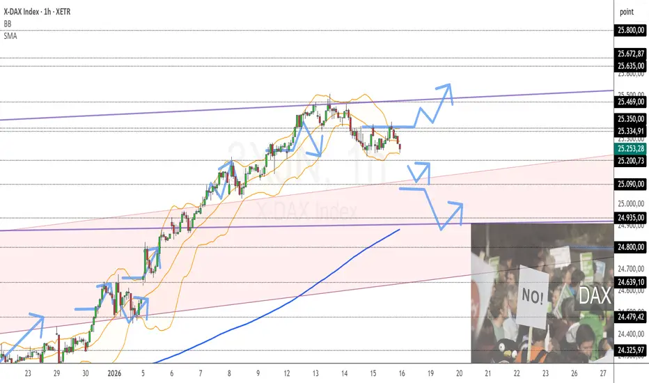 Tendenz: abwärts unterhalb von 25330 / 25360, darüber aufwärts