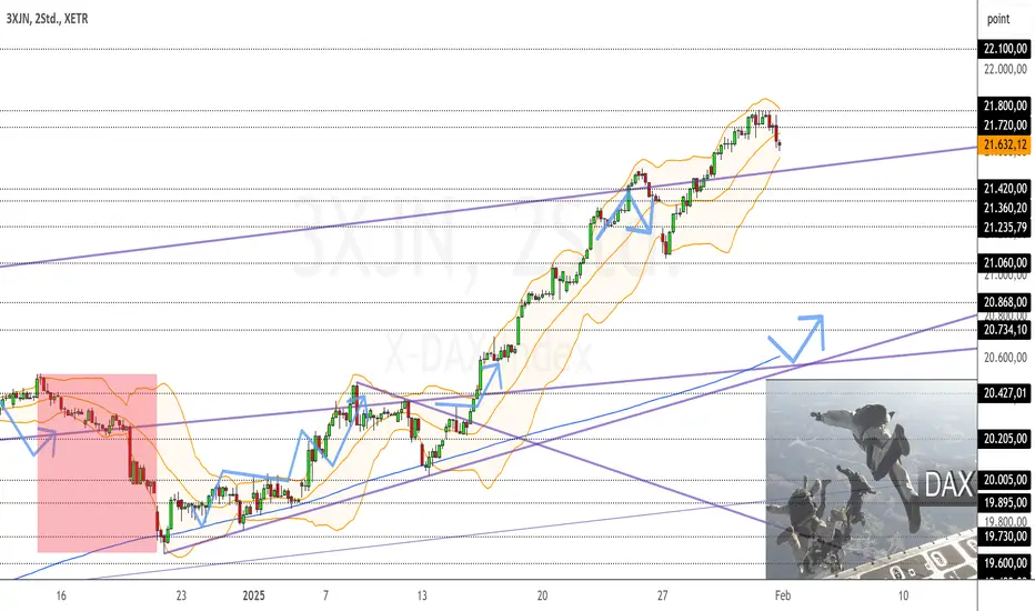 Die 21800 sollte zum Freitag nun zur neuen Messlatte werden. Sollte unser darüber kommen, wären 21830 / 21850 als nächster Gegner wichtig gewesen. Von dort sollte er durchaus nochmal zur 21670 zurückschieben können. Sollte er aber stattdessen oben durchkommen ginge es sonst dann einfach weiter zur 21910, 21980 und 22100. Unten hatte ich unsere Kante von 21600 auf 21670 angehoben um alles darunter eher kritisch zu betrachten. Sollte er den Support auf 21670 brechen, war darunter erstmal ein Rücklauf zur 21600 und 21510 / 21480 denkbar gewesen und würde er dort nicht halten, auch 21350 und tieferes. So die Zusammenfassung der letzten Analyse.