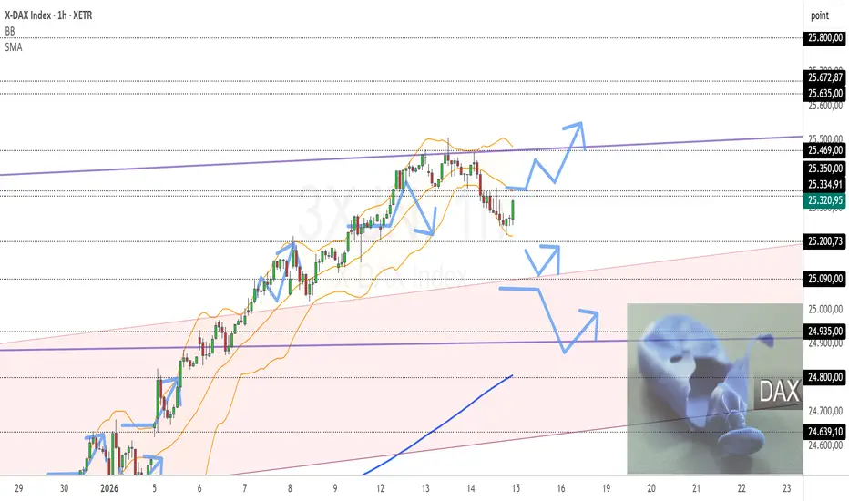 Tendenz: abwärts unterhalb von 25330 / 25360, darüber aufwärts