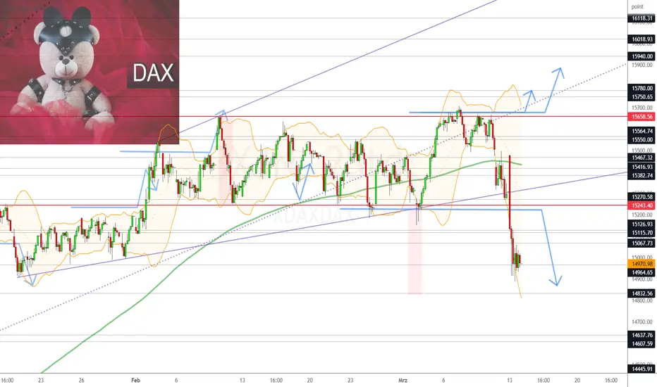Fazit: Unser Dax hat zum Montag trotz Deeskalation auf Seite der Silicon Valley Bank ordentlich einen Schmatzer aus der Range unten rausgestellt. Da es sich hier definitiv nun um einen Ausbruch handelt, heißt es im Zweifel erstmal für den Angeklagten. Solange er uns also keinen Fehlausbruch draus strickt, darf erneut auftretende Schwäche in die 14830 / 14800, 14670, 14590 und sogar bis rein in die 14200 erstmal noch geshortet werden. Wichtig wäre nur, dass er am Dienstag keinen Turnaround-Tuesday ausspielt und den Verkauf neuer Tiefs nicht verweigert. Sollte der nun nämlich nur hochschnipsen, sind 15145 und 15270 erstmal schöne Rücklaufmarken auch um sich wieder runterzudrehen. Durchbricht er die aber nach oben, wäre ein vollumfassender Konter auf 15445 / 15500 zu erwarten.