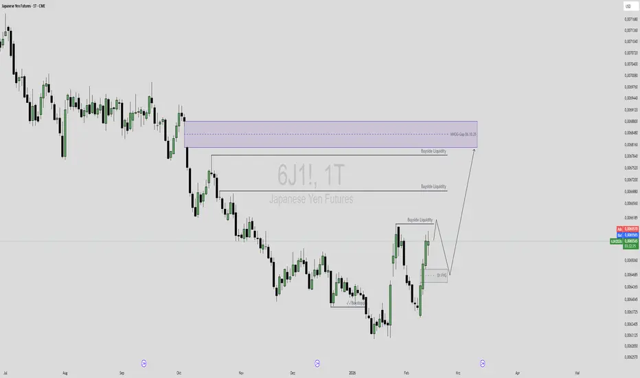 Die JPY-Paare USD/JPY, GBP/JPY und EUR/JPY sind aktuell im Downtrend, da der JPY-Future im Uptrend ist. der JPY ist kurz davor ein altes Hoch zu erreichen. Werden solch markante Punkte erreicht ist ein Retracement zu erwarten. Es sticht ein bullisches D1 FVG heraus als Retracement-Target. Sollte der Kurs hier zurückkommen und deutlich nach oben reagieren, könnte dies ein Signal für den grossen Long sein, entsprechen in den Paaren USD/JPY, GBP/JPY (siehe letzte Analyse) und EUR/JPY short. Wird spannend.