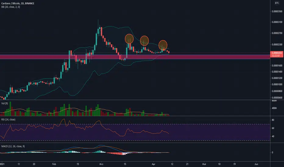 Angesichts der jüngeren Kursentwicklung ist auch ein Ausbruch nach unten denkbar, der ADA in die Zone um 1700 Sats befördern könnte, falls die etablierte Unterstützung um 1950 nicht weiter hält.