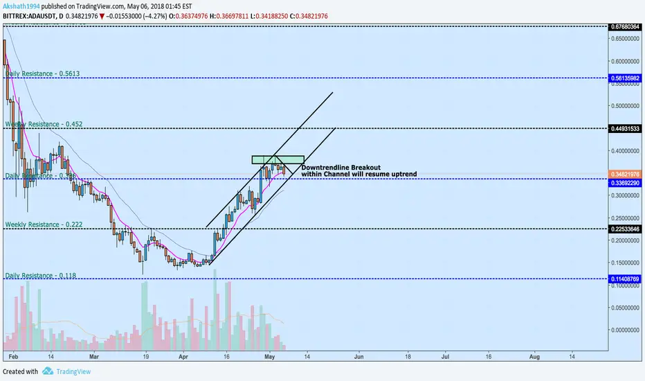 Cardano has been within our channel for quite a while now and has signalled strength within these levels.Higher prices are here to come and looks like once we breakout from the small downtrendline within the channel we can head back to the new targets at 0.44:+1: