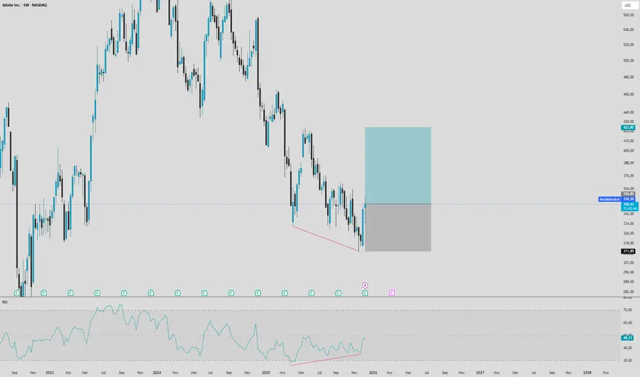 Bullishe Divergenz auf ADBE auf dem W1 Chart.