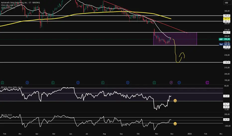 ADP hat den langfristigen Aufwärtstrend gebrochen und befindet sich nun im Abverkauf.