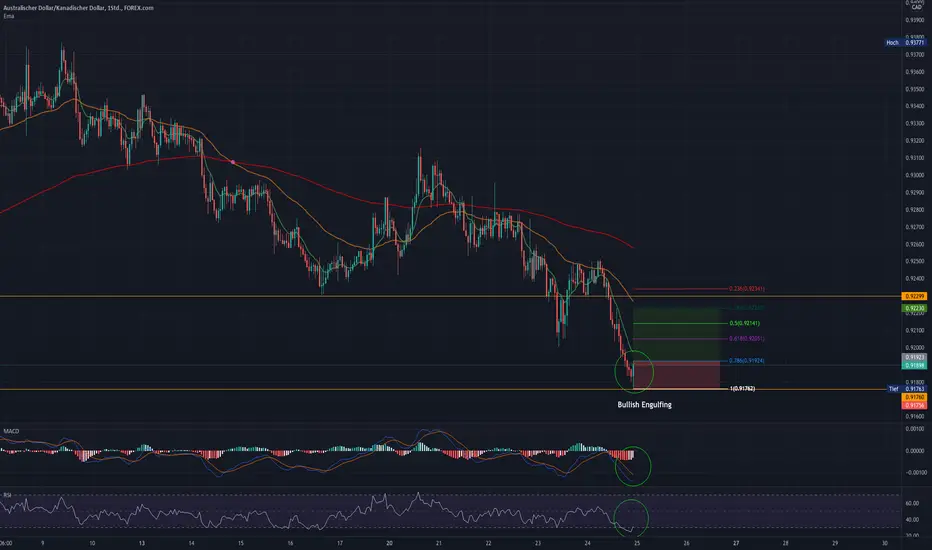 Hallo Leute, hier ist eine Trading-Idee für die nächste Woche: $ AUDCAD zeigt ein bullisches Engulfing auf dem 1h-Chart. Der Startpreis wäre 0,91923 mit einem SL bei 0,91756. Der RSI liegt bei 30 und auch für den MACD zeichnet sich eine Trendwende ab.