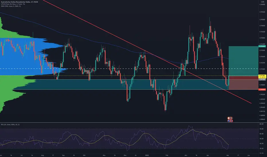 AUD/CAD testet nach einem Fehlausbruch Anfang April den Abwärtstrend. Z.Zt. an einer charttechnisch wichtigen Unterstützungszone angekommen, die zu halten scheint. RSI überverkauft, aktuell eindrehend. Kurs unter dem EMA 200.