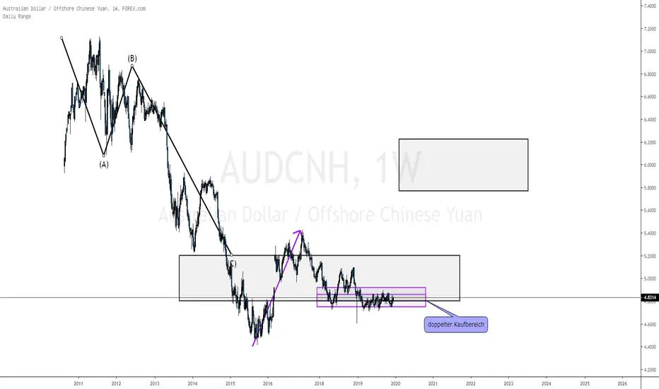 Hier hat der ganze Markt eine bärische Sequenz abgeschlossen und befindet sich seit eiiger Zeit im Ziellevel. Dieses stellt für uns einen Kaufbereich dar. Gleichzeitig hat sich vom alltime-Low aus ein Bullenlevel gebildet, welches einen interessanten Überlappungsbereich generiert. Wir konzentrieren uns untergeordnet auf bullische Struktur.