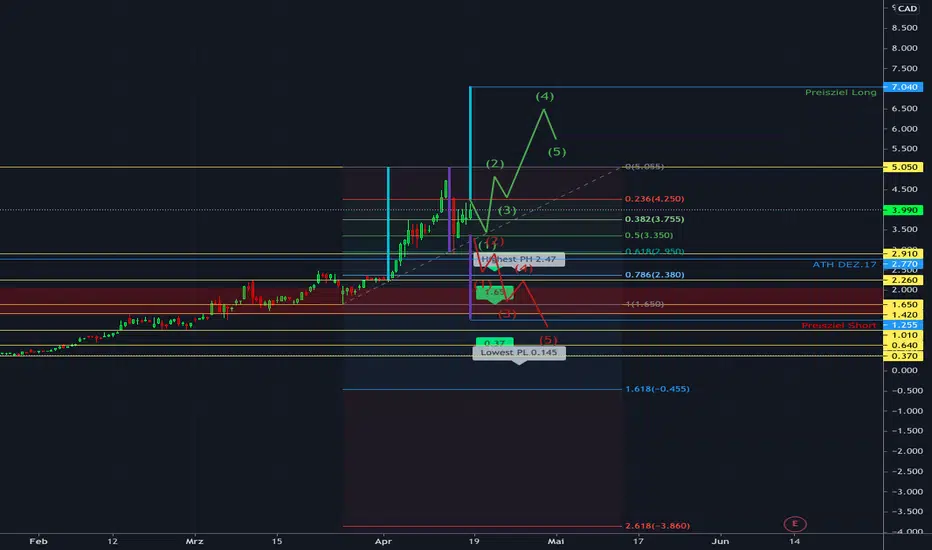 Der Run wurde am 14.04 am ATH von 5.05 Gebrochen und fiel auf ein Niveau von 2.91 welches knapp über dem ATH von 2017 (2.770) liegt und derzeit auch unser 0.6er Retracement ist.