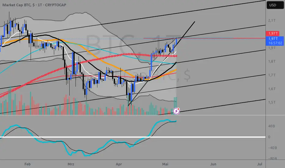 nach 5 Wellen kann es nun zu einer Korrektur kommen, ein Signal über 1.97 T ist Bullisch, darunter sehe ich eine Korrektur bis evtl 90-86.000. Darüber stehen neuen Hochs wenig im Wege.