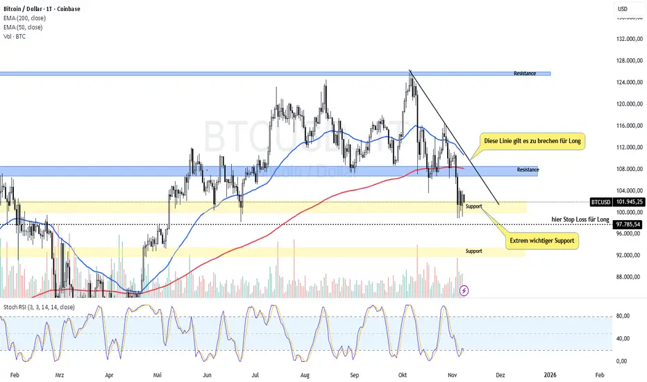 beim Bitcoin verdunkeln sich so langsam die Wolken. Der Support bei 108k wurde durchbrochen und ist nun logischerweise der erste Widerstand.