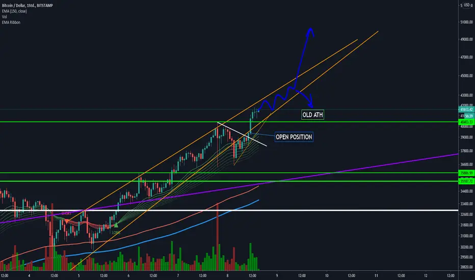 Meiner Meinung nach ist unser Rising Wedge immernoch aktiv und wir werden bald wieder einen sehr starken move sehen.