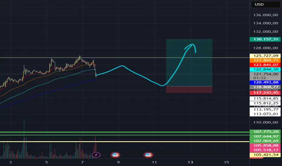 Ich erwarte einen korrektiven Bounce Richtung 123-124k, danach einen Rücksetzer zu den 118-119k um nochmal Kraft zu holen und dann die 130k zu knacken!