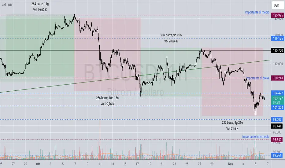 I margini su medio periodo sono diventati in maggioranza short, perciò mi aspetto un attacco ai livelli 108/109k usd dove si è formato un bel gruppo di margini dei corti su breve periodo, le leve superiori ai x10. Il livello medio è cambiato ed è passato sul massimo storico. Non lo stabilisco io, ma è il tempo a creare tutto questo. Mentre su intermedio i long tengono duro intorno ai 95/94k usd, anche se io ho messo il livello sui 93k usd per via di alcuni pattern che si sono formati in passato quando questo livello era una resistenza.