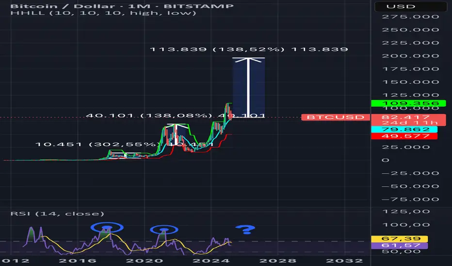 Seit dem letzten ATH war der Bitcoin noch nicht signifikant überkauft, wie z. B. anhand des RSI sichtbar wird.