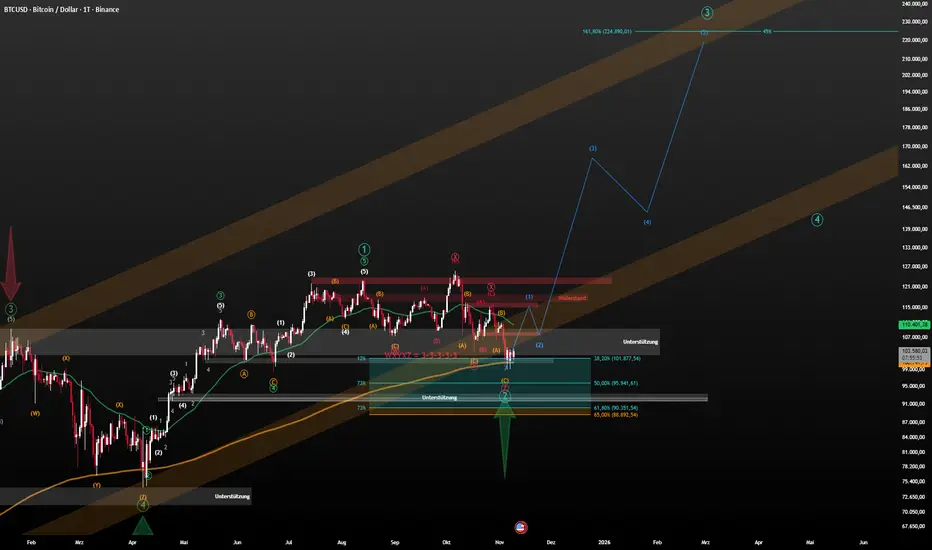 Möglicherweise ist das das Top als Alternative Welle 1, aber hey – der Chart wird’s uns erzählen (hoffentlich ohne Drama). 😅