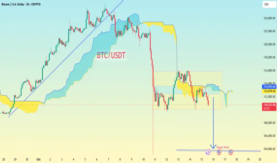 There’s a downward arrow pointing to a “Target Point” around the price level 103,828 USDT.