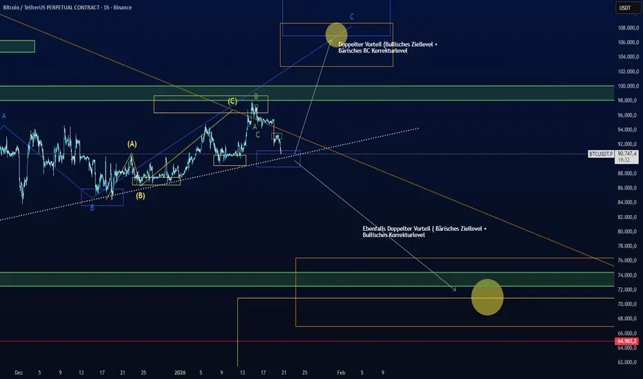 Die bullischen Ziellevel liegen oberhalb bei 107.000 USD bis hoch auf 112.400 USD. Der doppelte Vorteil im Überschneidungsbereich liegt bei 107.000 USD.