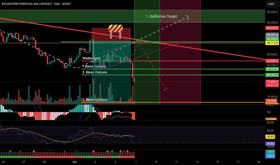 Wie ihr unschwer erkennen könnt, hat meine zuvor angekündigte Short-Position bereits perfekt in meine erste Zielzone getroffen. Ein schönes Beispiel für präzises Timing – und jetzt wird es richtig spannend, denn BTC steht an einem entscheidenden Punkt.