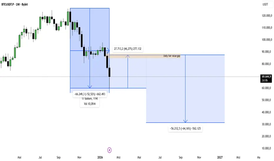 Wenn Bitcoin die vorherige Zyklusstruktur weiterhin respektiert, dürfte auf die Erholungsrallye wahrscheinlich ein weiterer Kursrückgang folgen. Historisch gesehen erreichen Märkte ihren Tiefpunkt selten in einer einzigen Bewegung. Sie bilden tendenziell komplexe Akkumulationsbereiche mit mehreren Expansionen und Korrekturen.