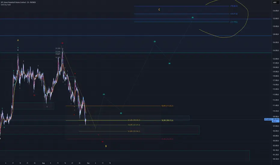*bei einer Durchberechung der aktuellen Zielzone von 105.900 $ könnten wir davon ausgehen, dass wir weiter Korrigieren. Dabei handelt sich es um eine ABC, dass heißt das es hoch und weiter runter geht.