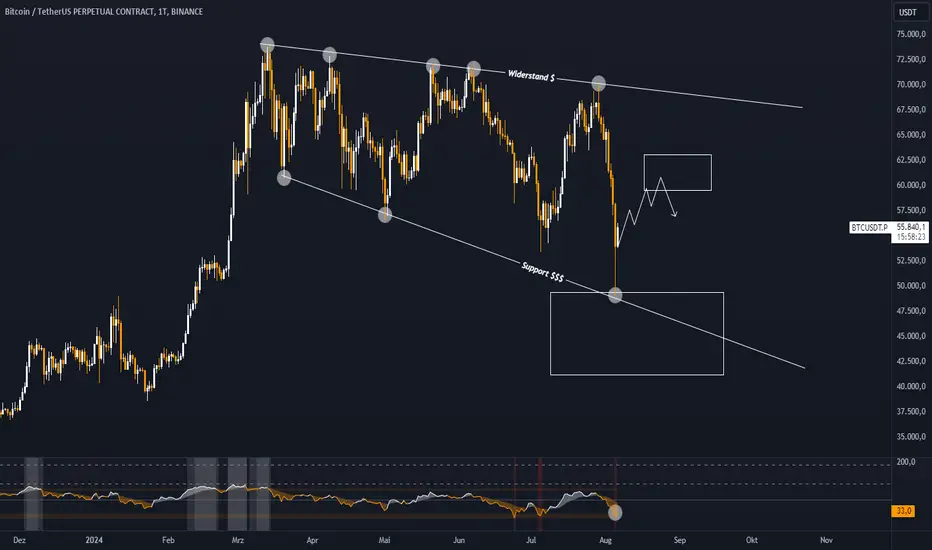 Wie ihr im Chart erkennen könnt gibt es noch Hoffnung bis auf unsere weisse Box bei 59'600-63'000$. Dies soll nicht dazu anregen jetzt Long zu gehen oder eine Position einzunehmen, erst mal abwarten wie der Markt reagiert und dann seine Positionen erneut umstellen 🙏