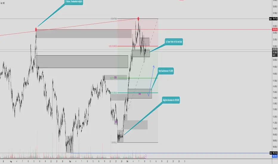 Kleine Analyse für den BTC. Der BTC ist momentan in einem Abwärtstrend. Ich rechne mit einer Korrektur bis 115.000$ wo ich auch ein Kaufinteresse hätte. Möglich natürlich ist das der BTC bis 109.000 Korrektur gibt.