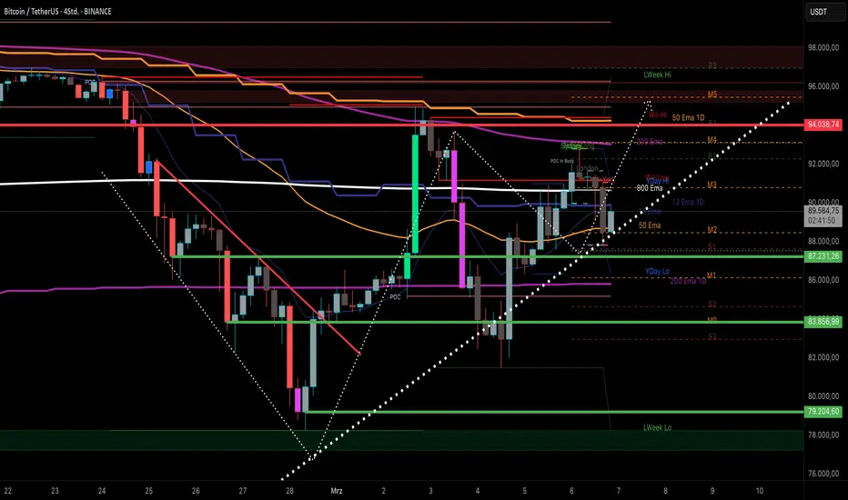 Andernfalls liegt der nächste kleinere Support bei 87230$. Sollte auch dieser nicht standhalten, folgen die nächsten Unterstützungszonen weiter unten.