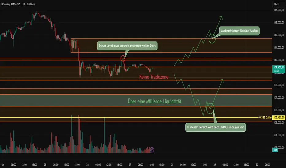 📉 Wir gehen weiterhin davon aus, dass Bitcoin den Bereich 106'300 – 105'000 USD ansteuern wird. Von dort aus könnte sich ein möglicher Ausbruch nach oben ergeben.