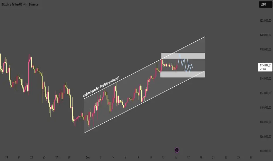 BTC/USDT befindet sich aktuell in einer Seitwärtsbewegung. Es ist wichtig, die Level 115.000 und 117.500 genau zu beobachten, um den nächsten Trend zu bestimmen.