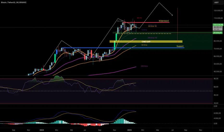 • Auch die 50er Weekly EMA könnte erneut angelaufen werden.