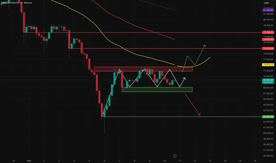 Auf der Oberseite ist die rote Widerstandszone der entscheidende Bereich. Erst wenn Bitcoin diesen Bereich nachhaltig zurückerobert und zusätzlich die 50er EMA im 4H-Chart wieder als Support etabliert, erhöht sich die Wahrscheinlichkeit für eine weitere Erholungsbewegung.