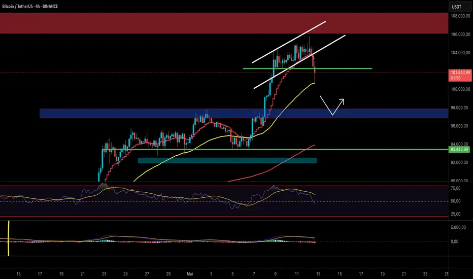 Bitcoin hat jüngst einen kurzfristigen Abwärtstrend eingeleitet und ist aus seiner bisherigen Range nach unten ausgebrochen. Aktuell dient die 50-Perioden-EMA im 4-Stunden-Chart als erste dynamische Unterstützung, an der der Kurs vorerst aufgefangen wurde. Die jüngste Reaktion zeigt, dass in diesem Bereich Kaufinteresse vorhanden ist.