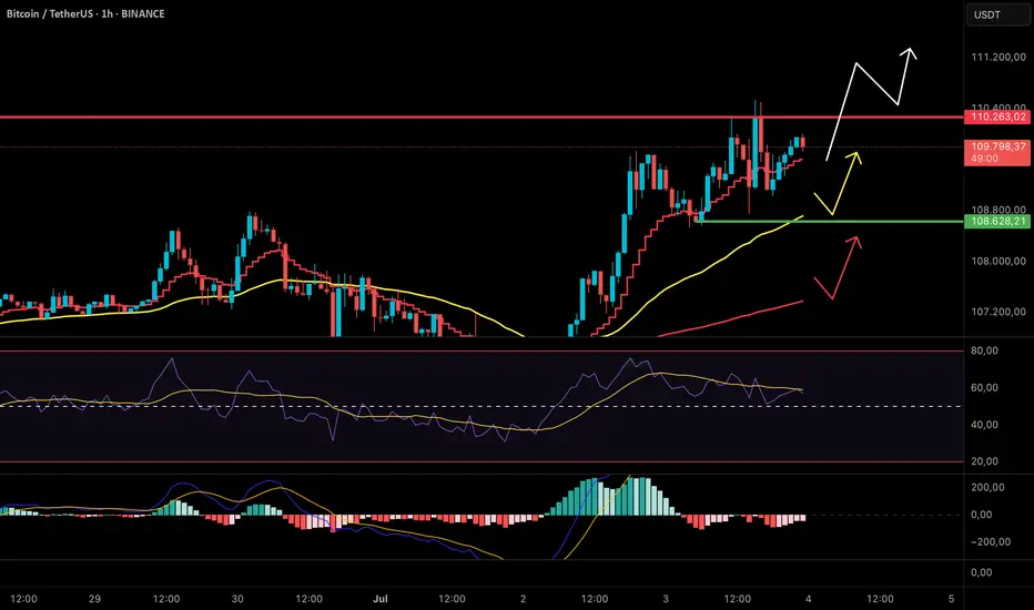 Bitcoin nähert sich erneut der psychologisch und technisch bedeutenden 110.000 US-Dollar-Marke, scheitert jedoch zunächst an der roten Widerstandslinie, die sich als kurzfristige Barriere etabliert hat. Trotz dieses Rückschlags bleibt das Chartbild aus analytischer Sicht konstruktiv: Der Kurs kann sich oberhalb wichtiger Unterstützungen stabilisieren und zeigt bislang keine Anzeichen für einen tieferen Rücksetzer.