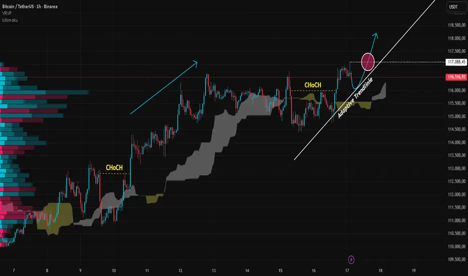 Technisch gesehen besteht das unmittelbare Ziel darin, den Widerstand bei 117.000 $ zu durchbrechen und in Richtung 118.000 $ zu klettern, sobald BTC über der Trendlinie bleibt.