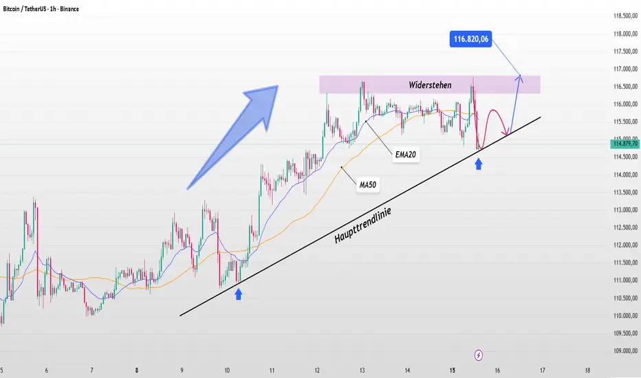Der Bereich von 116.800 USDT stellt weiterhin ein wichtiges Widerstandsziel dar. Sollte sich der Kurs über der Trendlinie halten und den Verkaufsdruck in diesem Bereich absorbieren, dürfte BTC kurzfristig in Richtung 117.500 ausbrechen.
