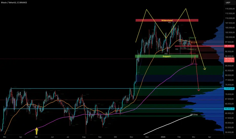 Bitcoin hat den Support in der grünen Box verloren und ist damit fast bis zur 200-Tage-EMA gefallen.
