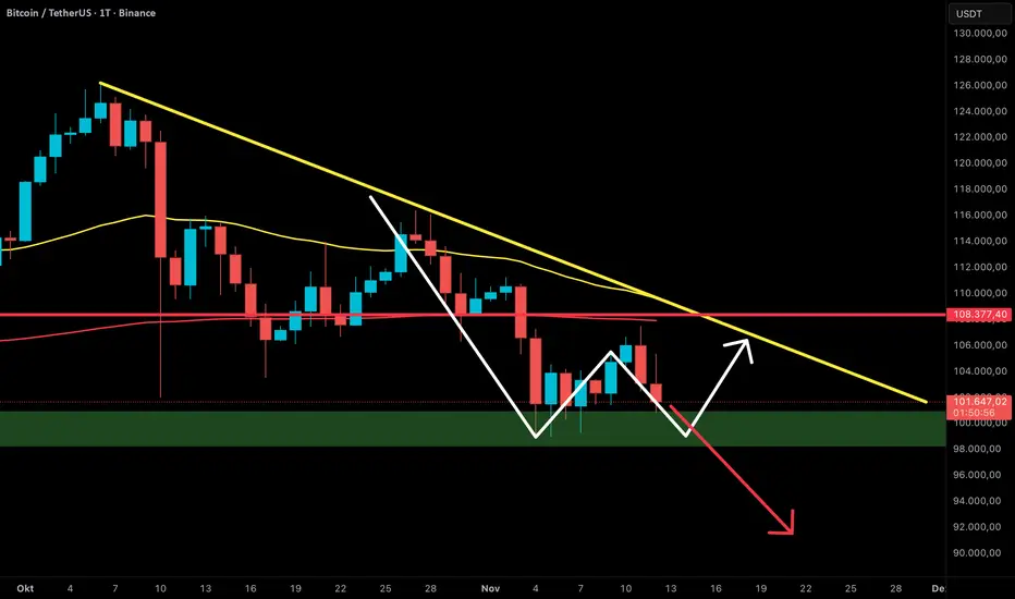 Der Bitcoin konnte zuletzt nicht über die 200er Daily EMA ausbrechen – kurz vor dieser Marke setzte erneut Verkaufsdruck ein, und der Kurs fiel zurück in die grüne Support-Zone. Diese Zone ist nun entscheidend: Sie muss halten, damit sich der Markt stabilisieren und eine neue Aufwärtsbewegung starten kann. Gelingt das nicht, besteht die Gefahr, dass der Kurs bis in den Bereich um 90.000 $ korrigiert.