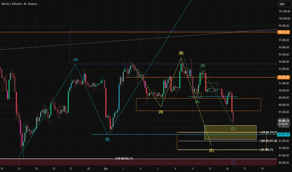 Bitcoin konnte das Niveau bei 89.000 $ leider nicht halten und korrigierte infolgedessen weiter nach unten. Das aktuelle Ziellevel der Korrektur liegt nun im Bereich zwischen 85.100 $ und 83.300 $. Ein möglicher Stabilisierungspunkt liegt aus meiner Sicht bei rund 84.200 $, da sich dort zwei Zielzonen nach dem SK-Prinzip überlagern.