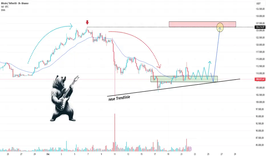 Nach einer technischen Korrektur zeigt BTCUSDT Anzeichen einer höheren Bodenbildung um die 108.000-Unterstützungszone und hält gleichzeitig die neue Aufwärtstrendlinie. Das aktuelle horizontale Akkumulationsmuster könnte, sofern es anhält, die Grundlage für den nächsten starken Aufschwung bilden.