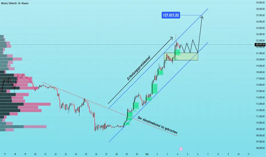 Bitcoin (BTCUSDT) auf Binance konsolidiert etwa 122.000 bis 123.000 USD, nachdem sie aus dem Kanal ausgebrochen sind. Die derzeit zunehmende Trendlinie mit der Stützfläche von 121.000 - 121.500 spielt eine "Matratze", um zu verhindern, dass die Struktur gebrochen wird.