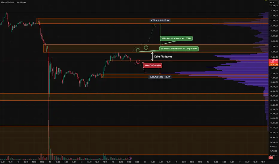 Schließt der BTC über 115'900 USD und bestätigt dies mit einem Follow-up, suchen wir in diesem Bereich nach einem Long-Signal.