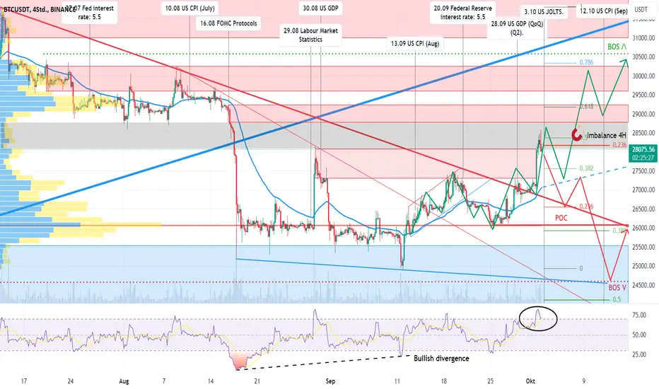 Der Preis von Bitcoin ist in die 4-Stunden-Ungleichgewichtszone eingetreten, wie wir in all unseren jüngsten Ideen gewarnt haben. Infolgedessen hat der Preis die globale Abwärtstrendlinie durchbrochen und die vorherige Preisspanne verlassen. Diese BTC-Rallye ist mit einer erheblichen Anhäufung von Short-Positionen verbunden, wobei das Gesamtvolumen der Short-Positionen bis zu 85 % im Vergleich zu den Long-Positionen erreicht. Während des Aufwärtsimpulses wurden Short-Positionen im Gesamtwert von über 100 Millionen US-Dollar liquidiert.