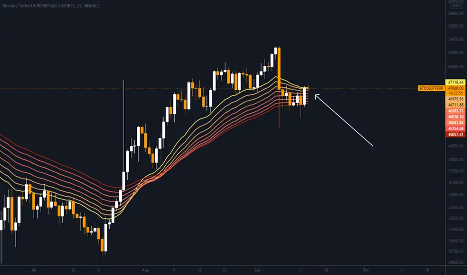 Wir haben Gestern einen schönen Pump in Richtung oberes Ende der EMA-Ribbons gesehen. Nun könnten wir heute wieder über den Ribbons schliessen und somit den Up-Trend endlich wie gewohnt vorsetzten.