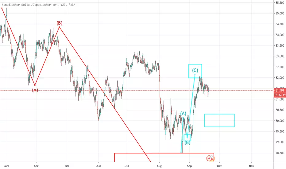 Der CADJPY ist in den Zielbereich der blauen Sequenz gelaufen und könnte nun einen Rücklauf Richtung Korrekturbereich machen, bevor es weiter Long geht.