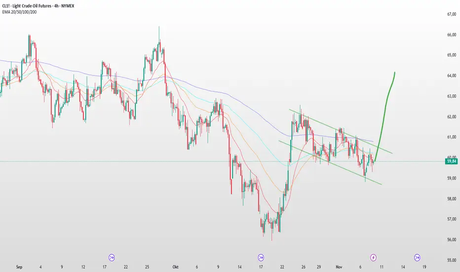 Die Ereignisse der letzten Tage, wie die Zinsentscheidung der Fed, die Zollverhandlungen und der Regierungsstillstand, schienen den WTI-Preis nicht beeinflusst zu haben. Aus technischer Sicht ist eine Long-Position empfehlenswert. Nach dem Ausbruch aus dem Abwärtstrendkanal dürfte der Preis die Region um 63–65 US-Dollar ansteuern.