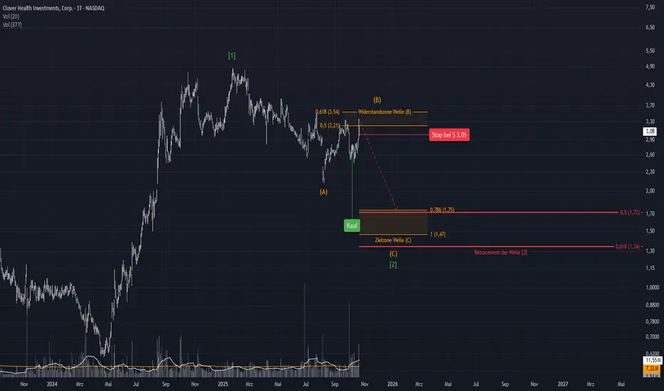 Clover Health befindet sich in einer entscheidenden Phase innerhalb der übergeordneten Welle [2]. Das aktuelle Korrekturmuster zeigt ein technisch reifes Stadium, das mit zunehmender Wahrscheinlichkeit den Boden eines neuen Zyklus markieren könnte.
