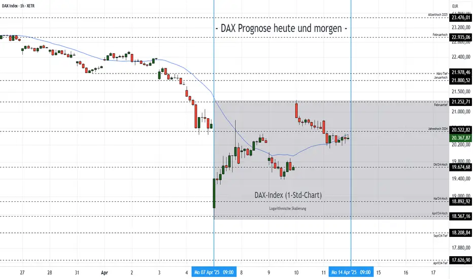 Erwartete Tagesspanne: 20.200 bis 21.400 alternativ 19.300 bis 20.600